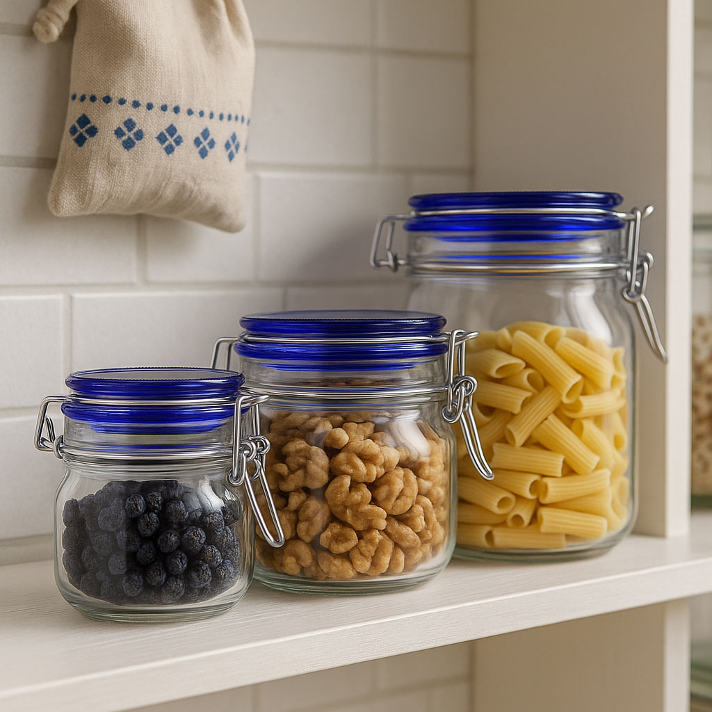 „Fido Blue Top“ sari ühendab tõestatud funktsionaalsuse kaasaegse disainielemendiga. Itaalia traditsioonilise ettevõtte Bormioli Rocco valmistatud kvaliteetsed traathoidjaga klaaspurgid paistavad silma oma ruudukujulise aluse ja elegantse sinise klaaskaanega, mis annab neile esteetilise ilme. Saadaval mahutavusega 500 kuni 2000 ml, pakub „Fido Blue Top“ mitmekülgseid kasutusvõimalusi – alates koduste delikatesside säilitamisest kuni stiilse toiduvaru hoidmiseni. Komplektis olev traathoidja tagab koos klaaskaanega ja kummiringiga õhukindla sulgemise.