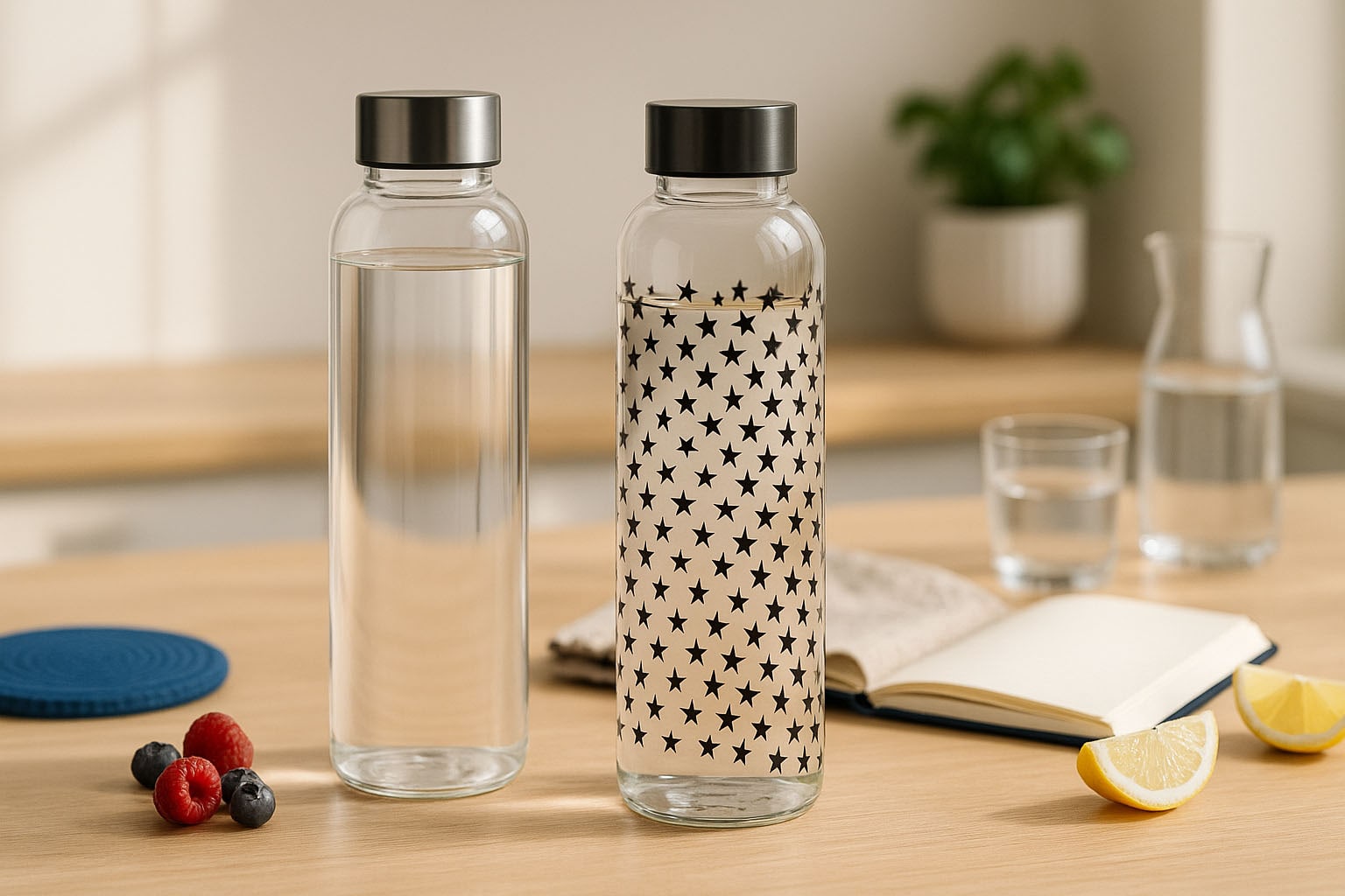 CARRY Perseus sari ühendab kõrgeima kvaliteedi stiilse disainiga ning on ideaalne valik kõigile, kes hindavad igapäevaelus jätkusuutlikkust ja esteetikat. Saksamaal valmistatud vastupidav klaasist joogipudel paistab silma oma õhukese, silindrilise kujuga ja täpse viimistlusega. Praktiline keeratava kaelaga kork tagab kindla sulgemise – sobivad kaaned on saadaval meie valikus. Inspireerituna kaasaegsest kunstist ja looduslikest elementidest pakub Perseus valikut unikaalsetest motiividest, nagu õrnad lillad lilled, stiilsed mustad täpid ja dünaamilised türkiissinised kolmnurgad. Ajatu elegantsi ja jätkusuutliku tootmisega annab Perseus sari selge sõnumi teadlikust tarbimisest ja individuaalsest disainist.