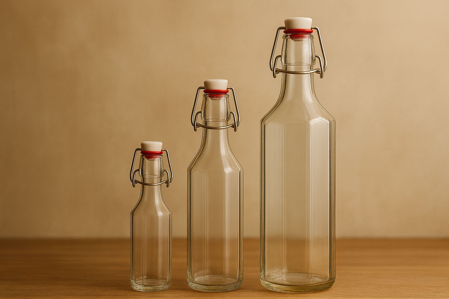 Purgid ja pudelid 750 ml klaaspudel 'Bravo', kümnekandiline, ava: sanglukuga sulgur